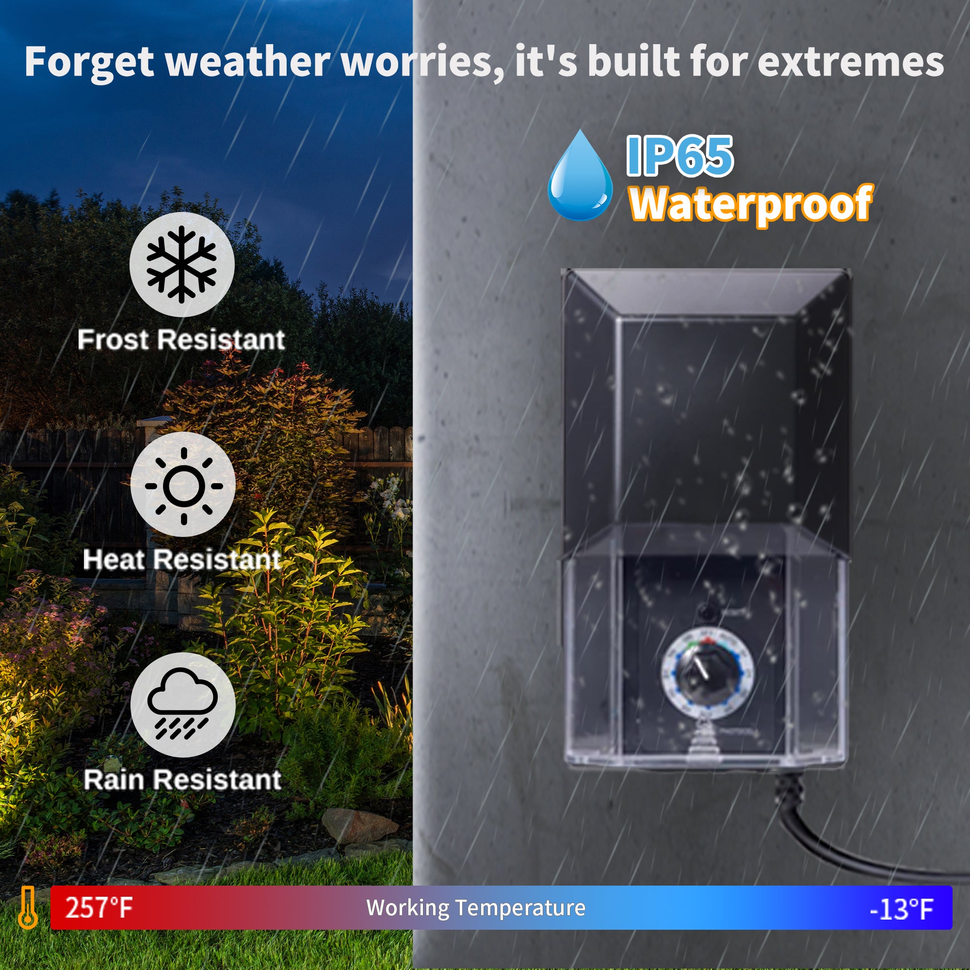 - ALL-WEATHER DURABILITY-Built with a rugged, corrosion-proof housing and sealed to an IP65 waterproof rating, this outdoor power pack is shielded from rain, snow, and sun. As a truly weatherproof transformer, it delivers stable 12V power to your outdoor lighting year after year.