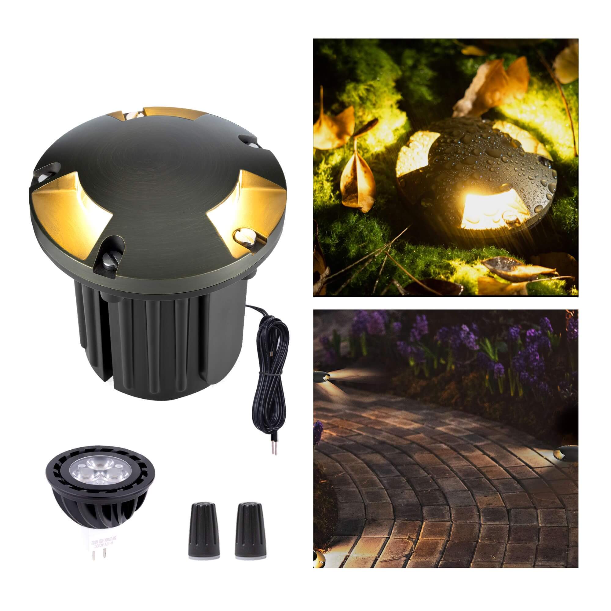 - Safe & Energy Efficient: Compatible with most transformers, our 12V low voltage outdoor well lights offer a safe glow for pets and kids. With minimal protrusion, these in ground well lights with a brass top cover won't hinder lawn care. The 5W MR16 LED bulb is more energy-efficient than a traditional lamp, with a lifespan of 50,000 hours