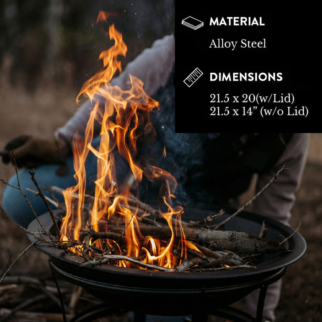 - Safe and Reliable: This camping fire pit comes with a special mesh lid that protects against fire sparkles while ensuring optimal airflow to keep the fire going. The lid is also equipped with a sturdy circle handle for easy removal without burning your hands.