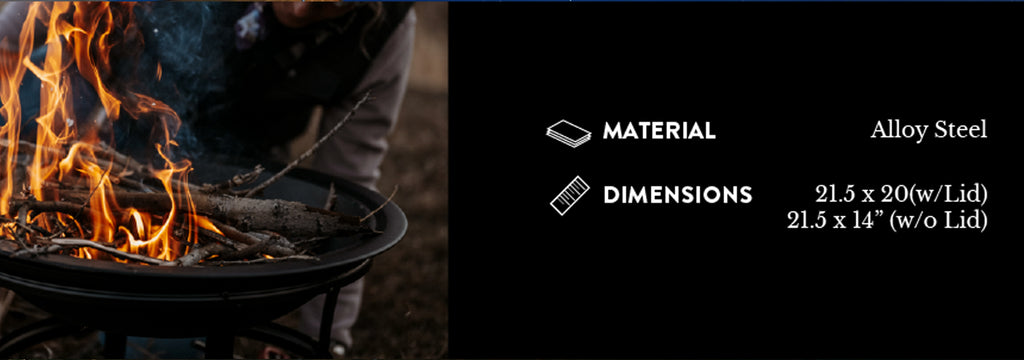 - What You Get: The outdoor fire pit bowl measures 21.5-inch in diameter and 20-inch in height with the lid. It also comes with a fire picker, so you can prepare the fire, move the fire logs or drag the charcoal without improvising.