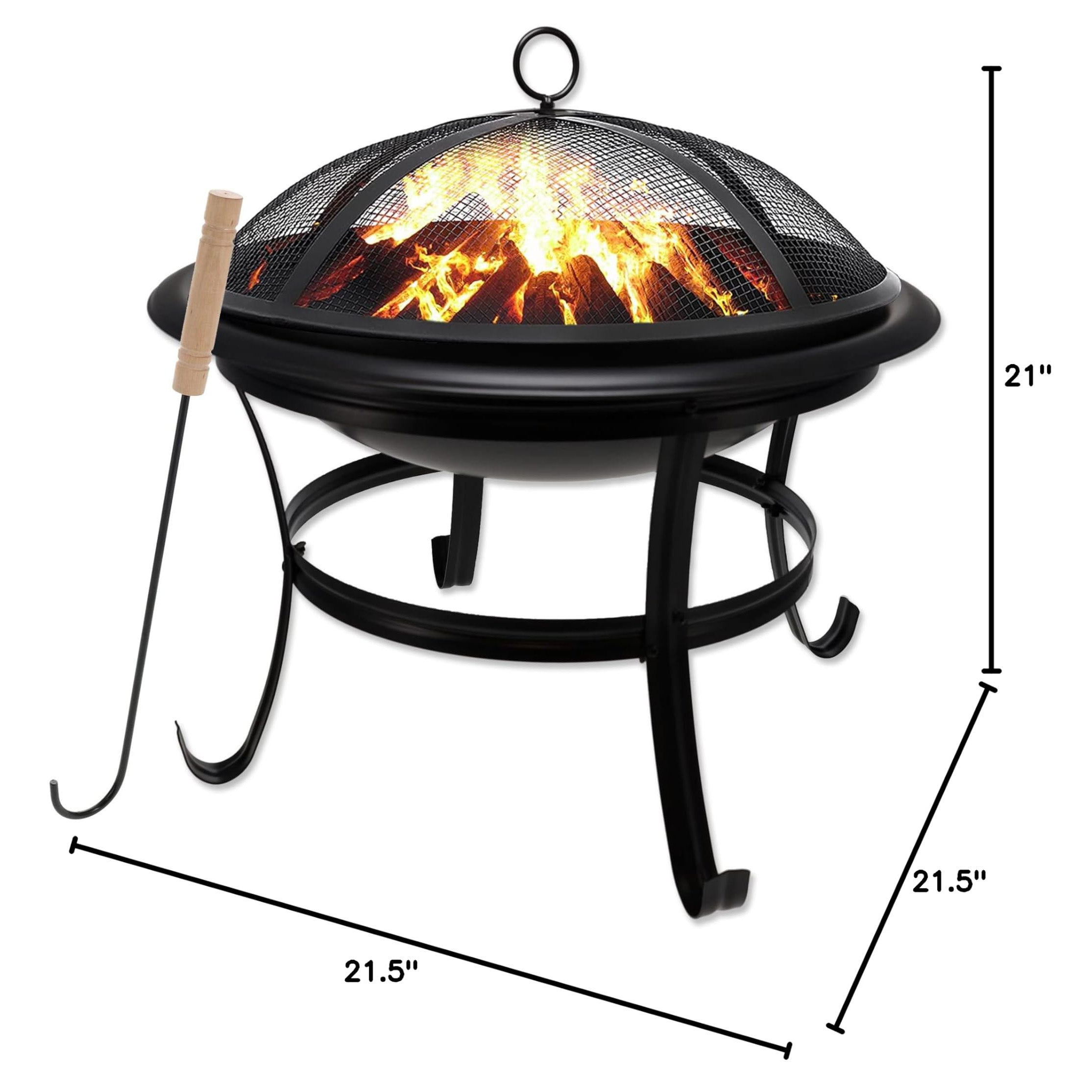 22 inch Outdoor– Wood Burning Fire Pit with Mesh Lid and Fire Picker – Durable Alloy Steel Fire Pits for Outside – Small Fire Pit for Backyard, Porch, Deck, Camping, BBQ