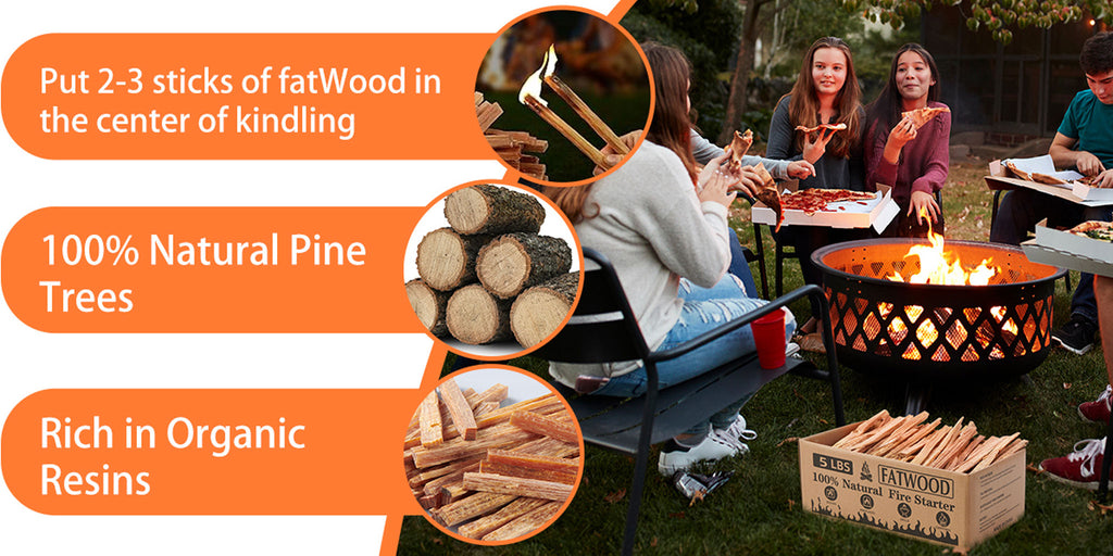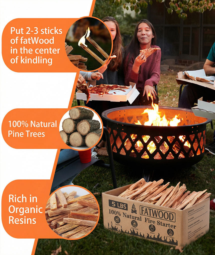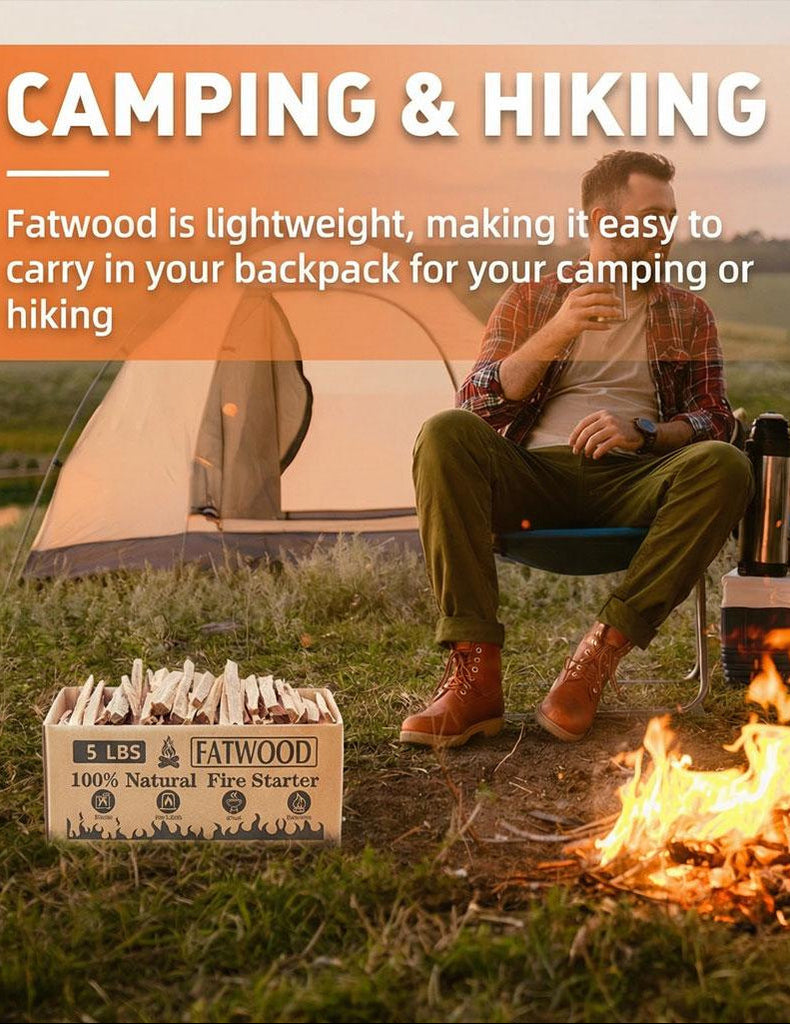 100% natural pine fatwood fire starter sticks. Ignites easily when wet, with long-lasting flames for grills, campfires & stoves. Chemical-free & safe.