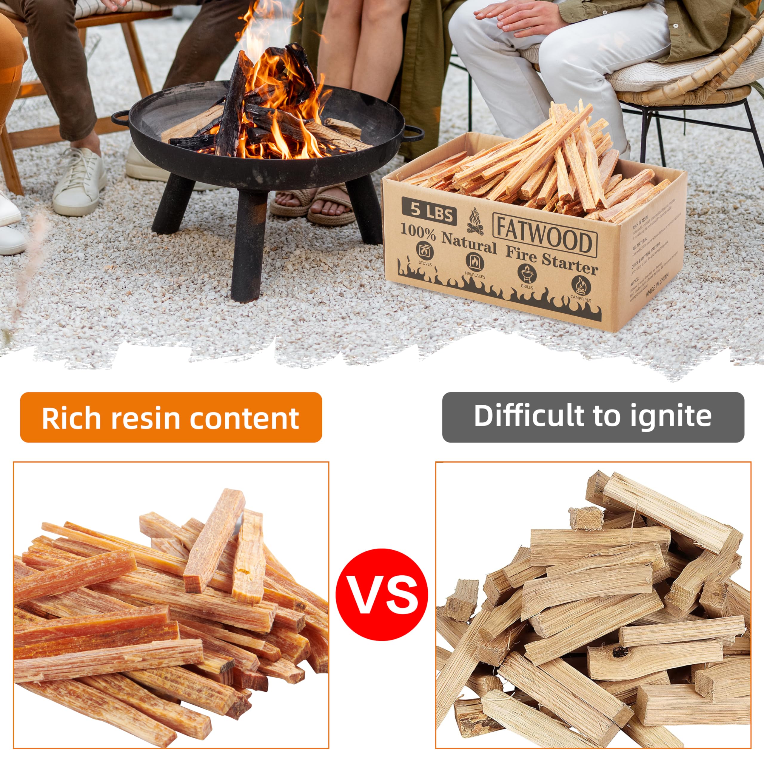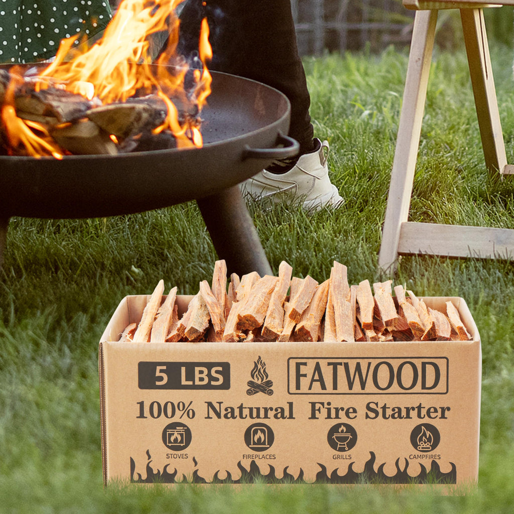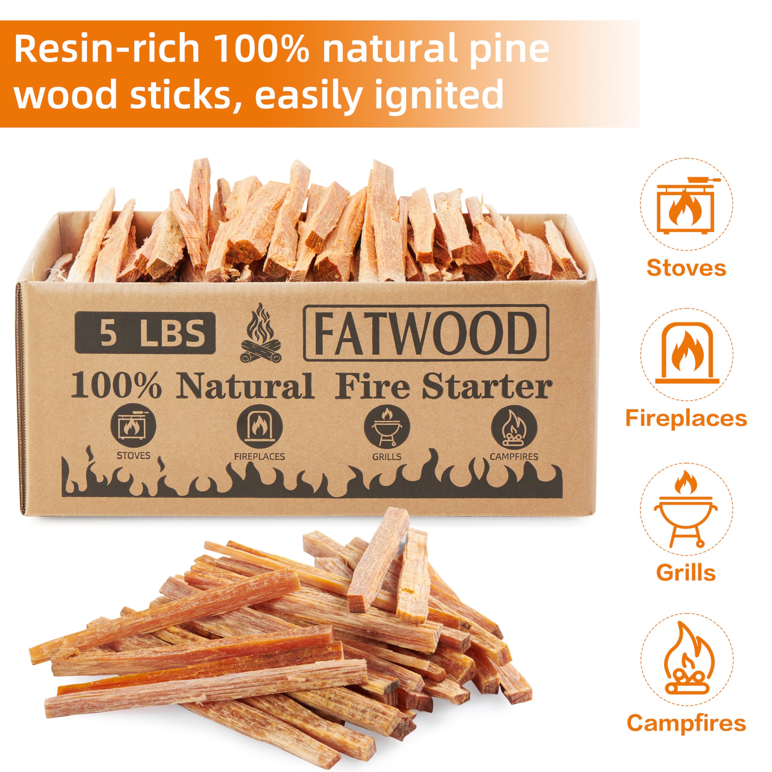 5 lbs Fatwood Fire Starter Sticks, 100% Natural Kindling Firewood Firestarter for Stoves, Pine Wood for Fireplaces, Campfires, Bonfires, Grill