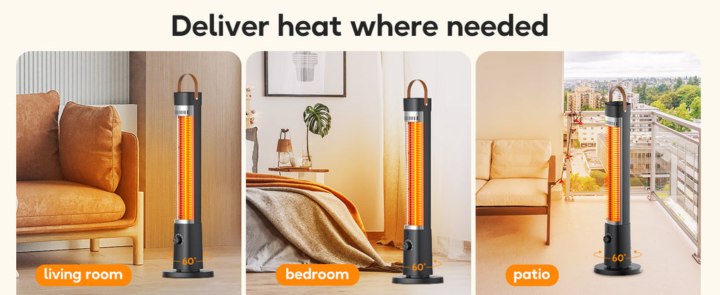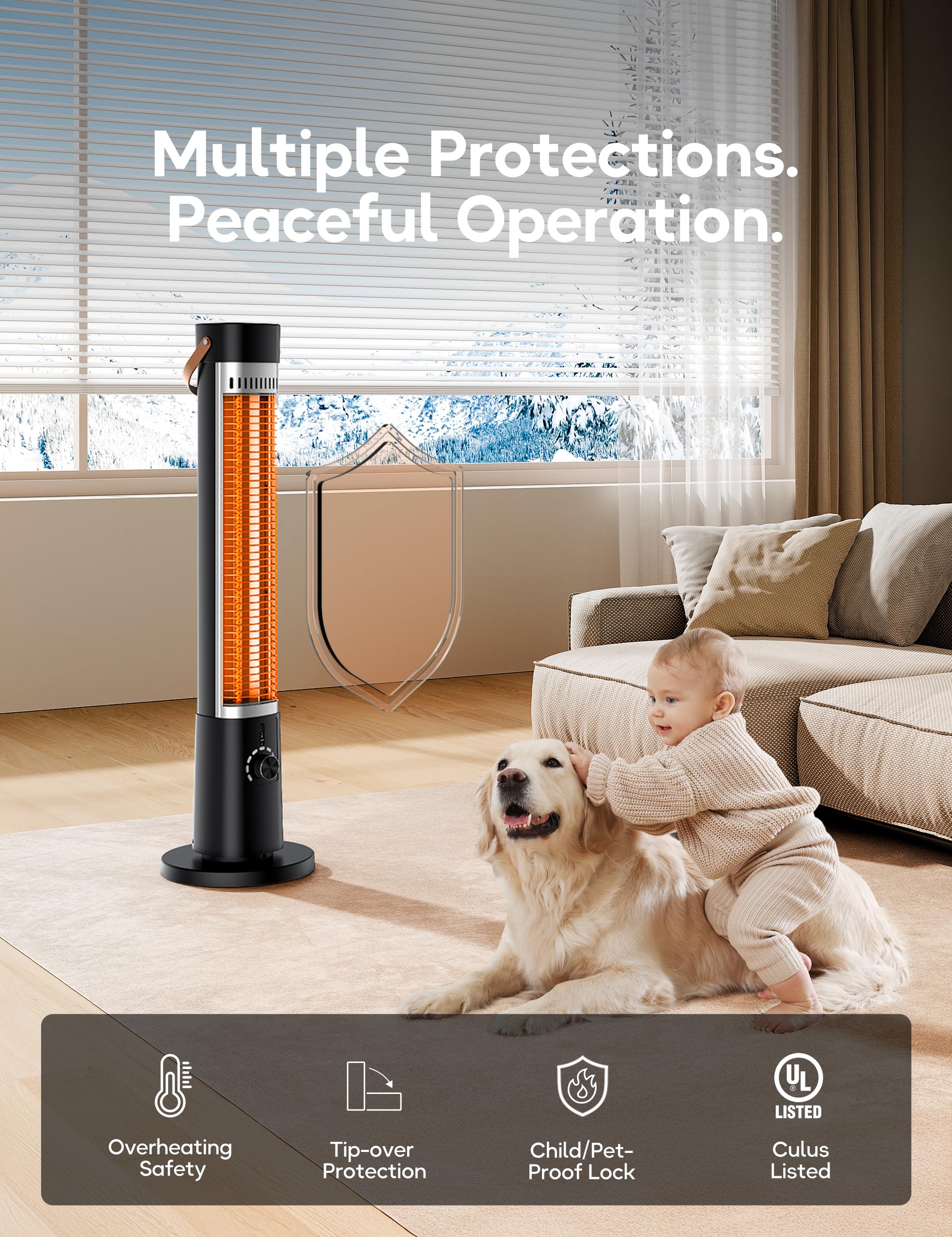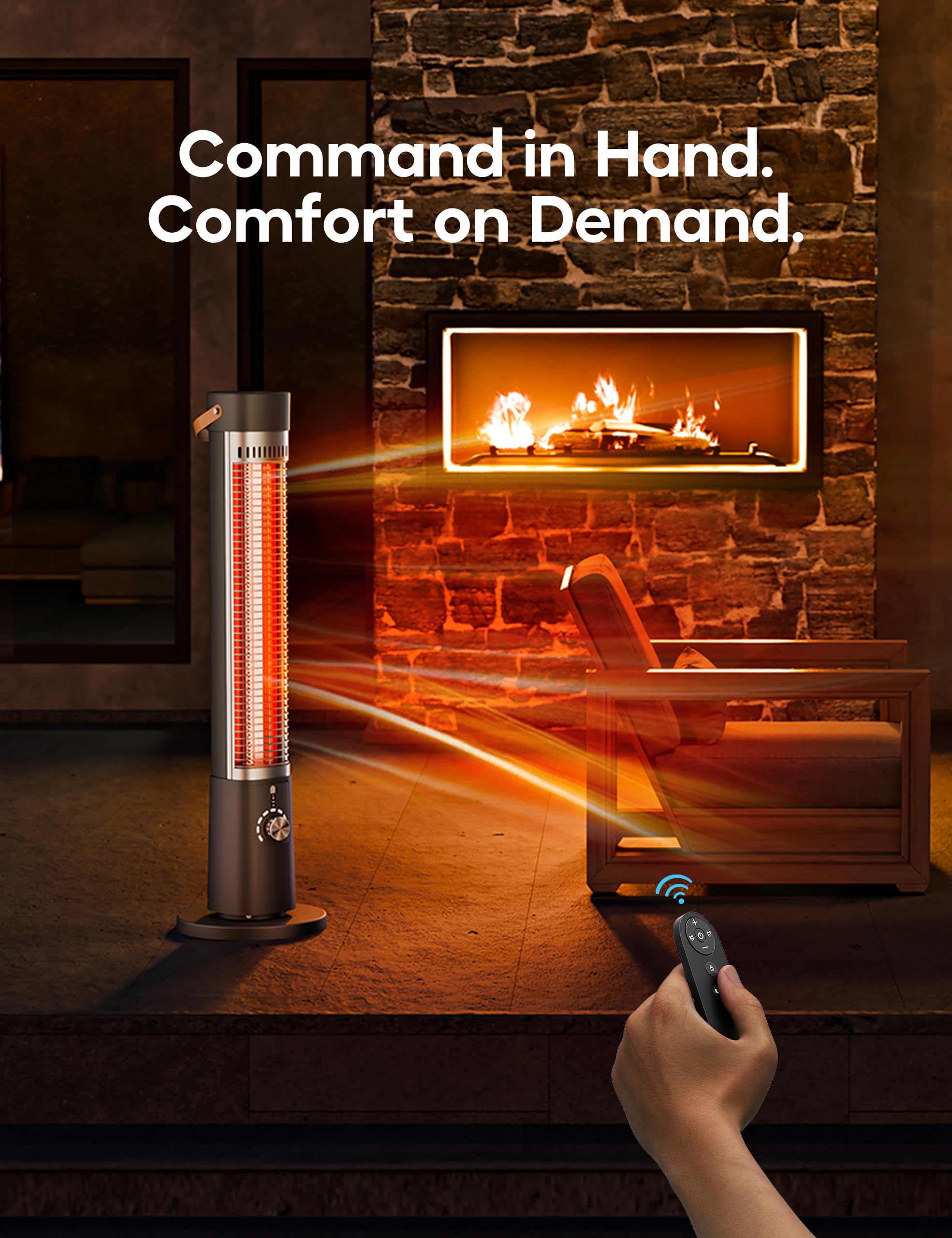 Patio Heater for Outdoor Use, Infrared Electric Outdoor Heater, 1500W Instant Heating, 60-Degree Oscillation, 9 Heat Levels, 9H Timer, Remote, for Garage, Backyard, Large Room, Indoor, 32.2", Black