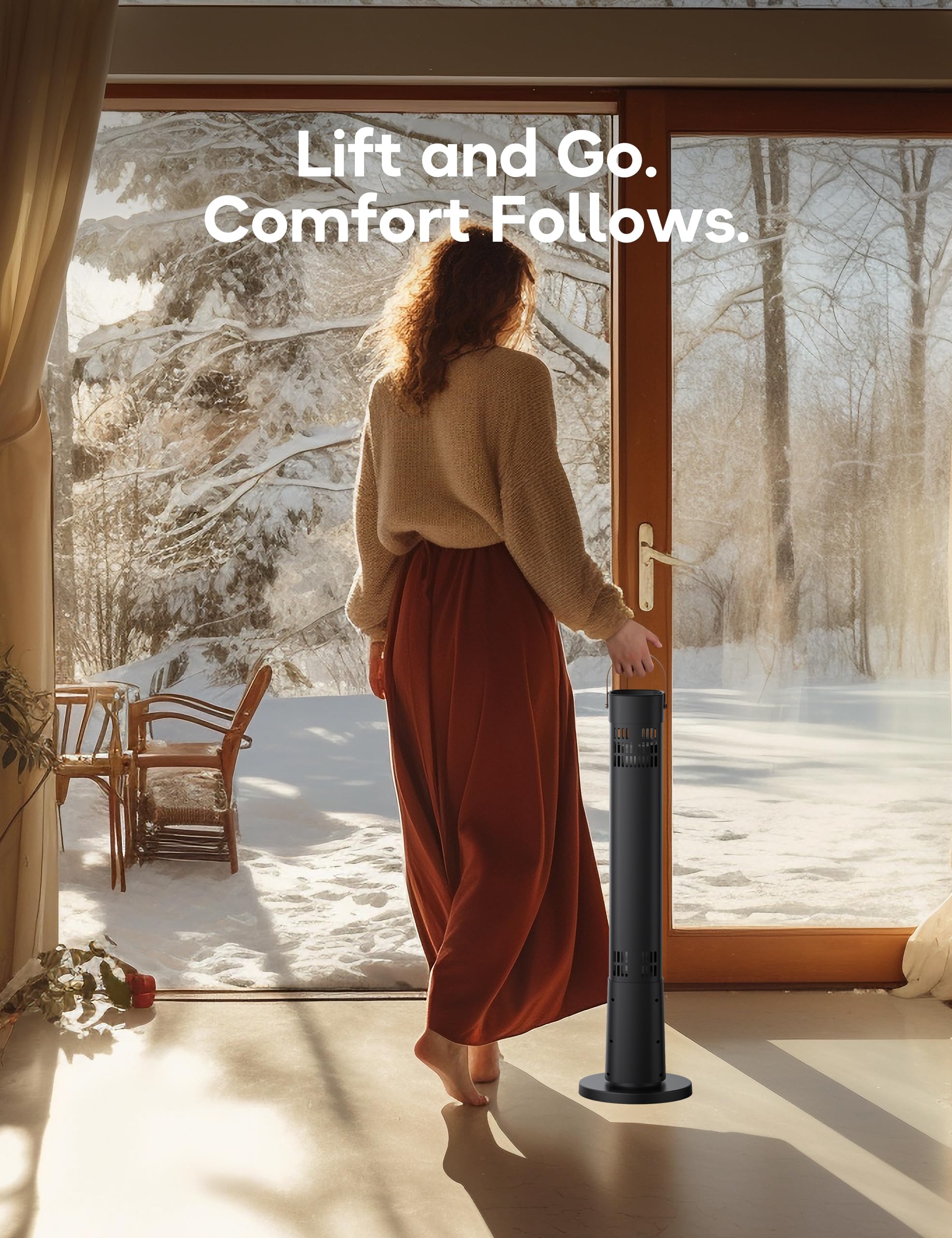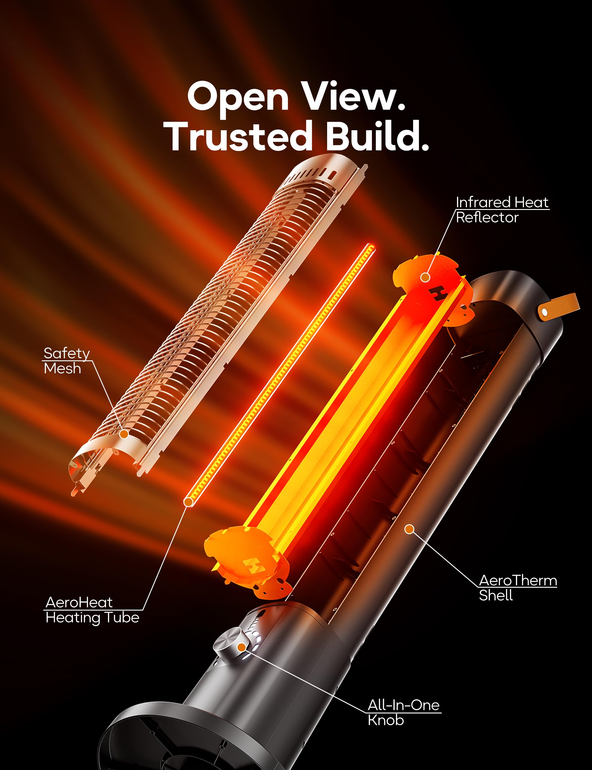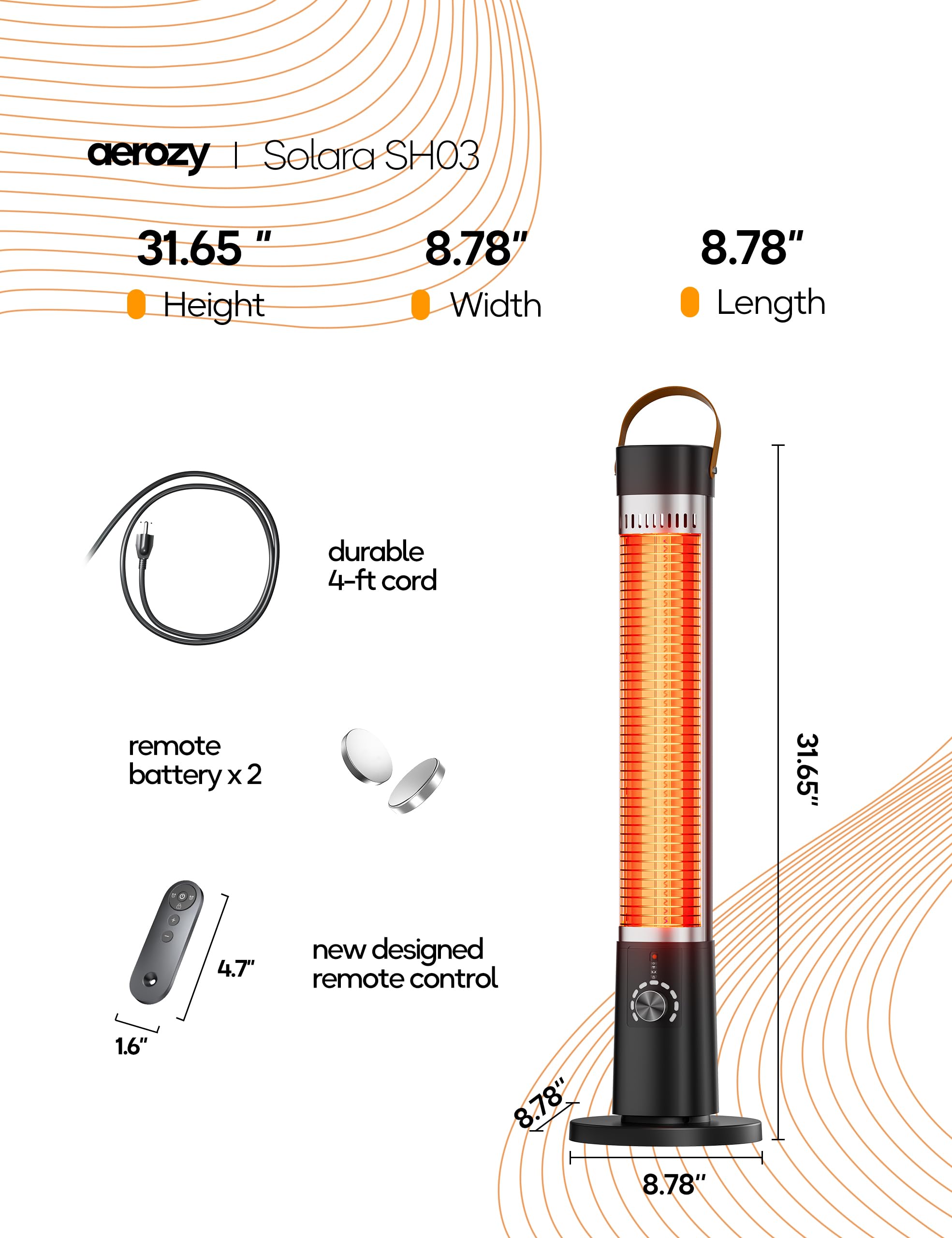 Patio Heater for Outdoor Use, Infrared Electric Outdoor Heater, 1500W Instant Heating, 60-Degree Oscillation, 9 Heat Levels, 9H Timer, Remote, for Garage, Backyard, Large Room, Indoor, 32.2", Black