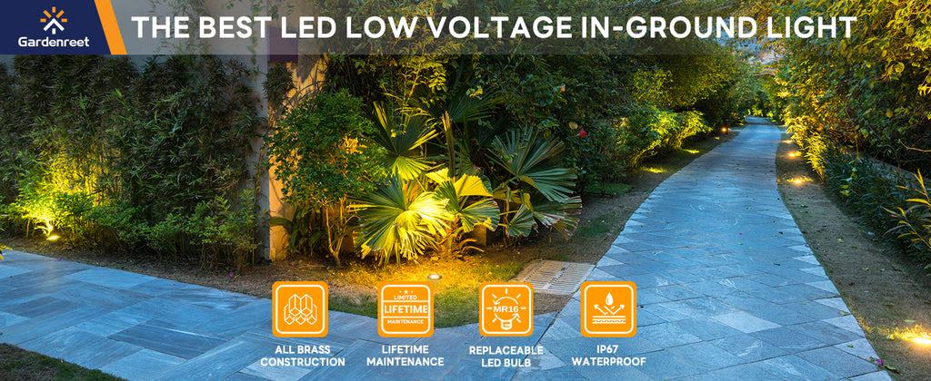 Gardenreet's LED in ground landscape lighting is energy-efficient, eco-friendly, and saves you on electricity bills. Experience the safety and enhanced beauty of outdoor landscape lighting without breaking the bank!
