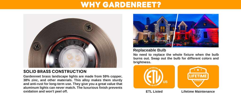 Gardenreet's brass in ground well lights are corrosion-resistant, ensuring long-lasting beauty. With replaceable bulbs, you won't need to replace the entire fixture. Plus, we offer a lifetime warranty for our brass led well lights. It's a durable investment that lasts for years!
