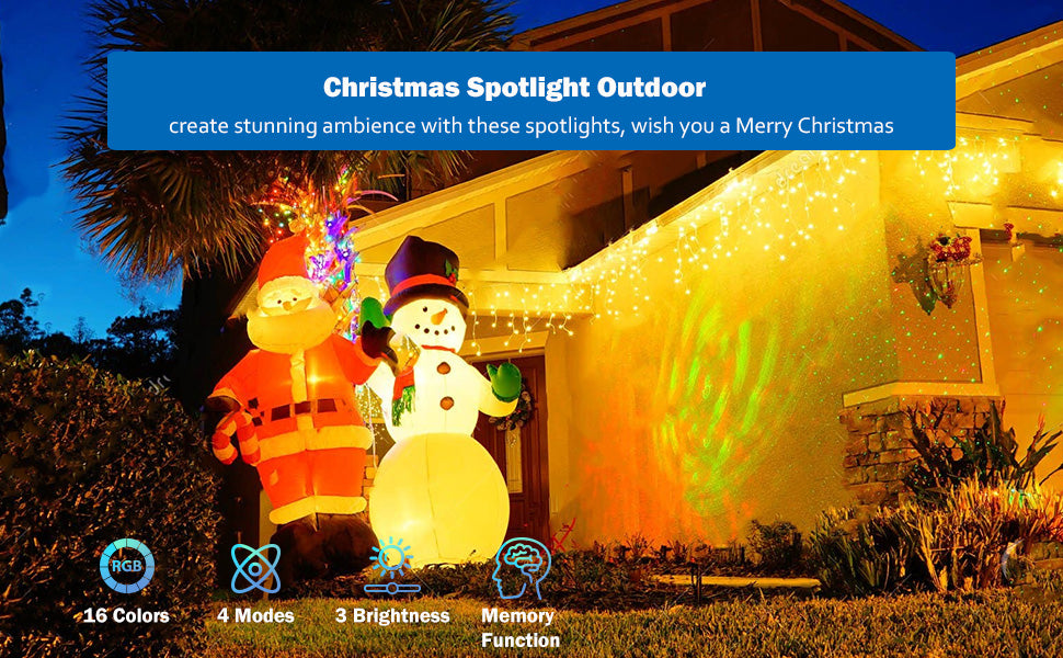 Christmas Spotlight Outdoor, 12W RGBW LED Spot Lights with 16 Color Changing, IP65 Waterproof 120V Plug-in Landscape Lighting with Remote