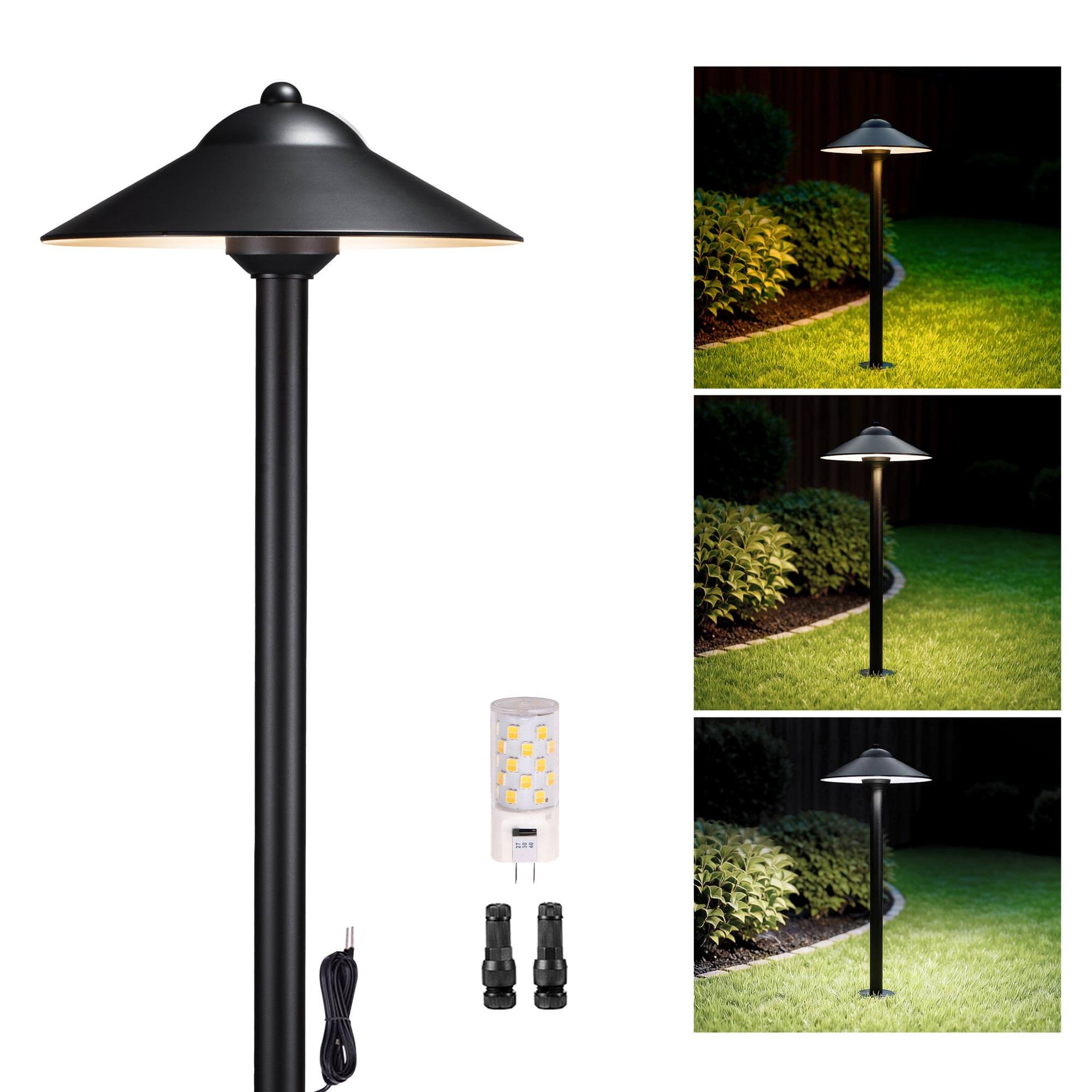 Gardenreet Black Low Voltage Brass Path Light Extra-Wide Illumination Range (9" Shade, 23.5" Tall) (2407)