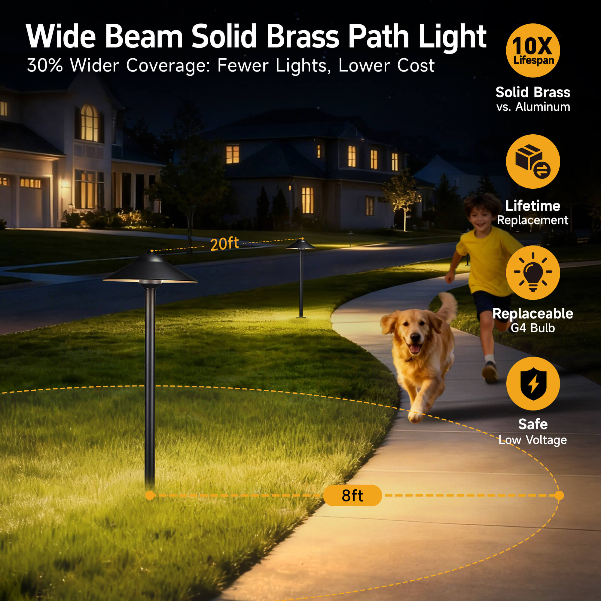 16 feet (30% larger coverage area than most path lights)
