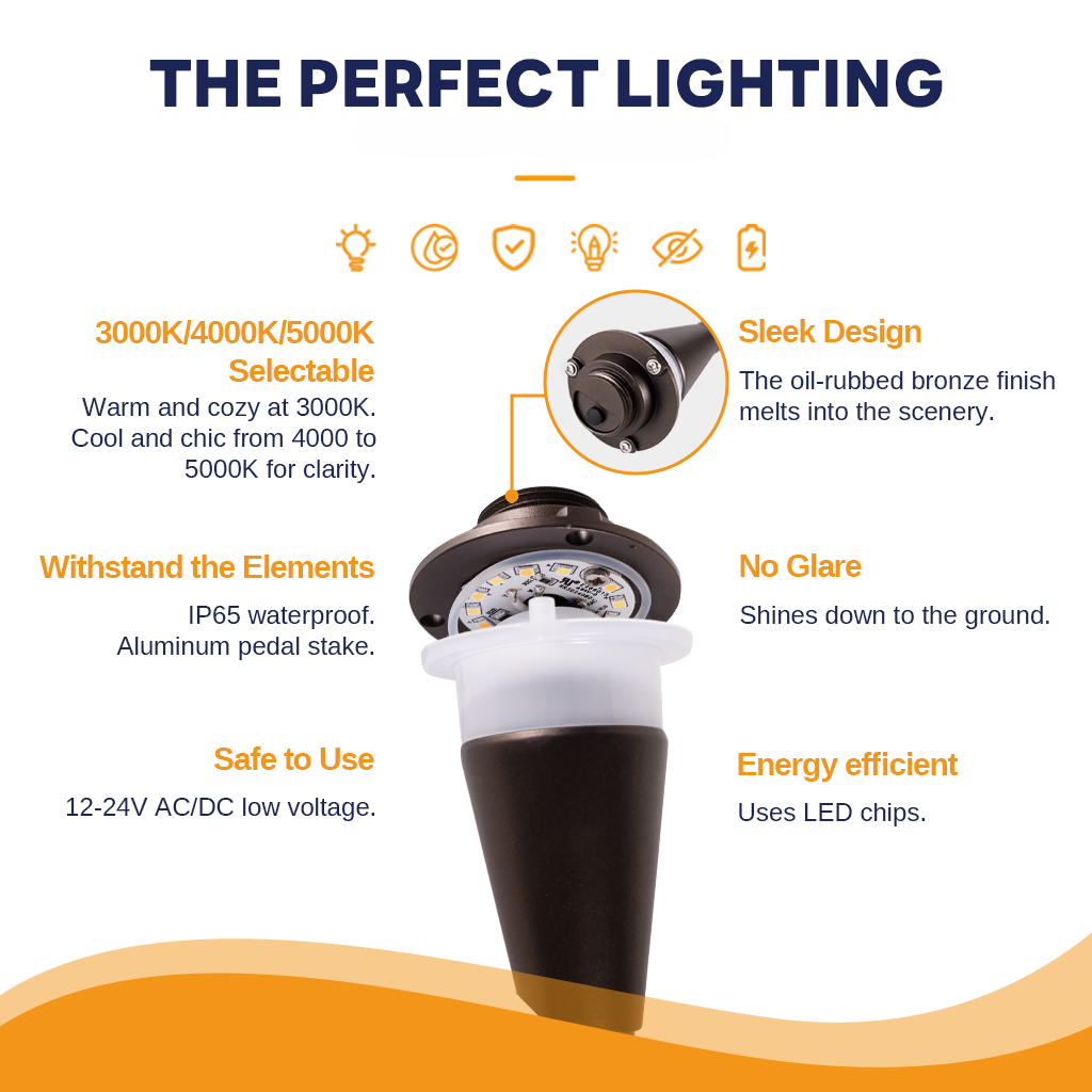 These low voltage landscape lighting path lights come with a 5-year warranty. We provide free replacements for any fixture malfunctions.