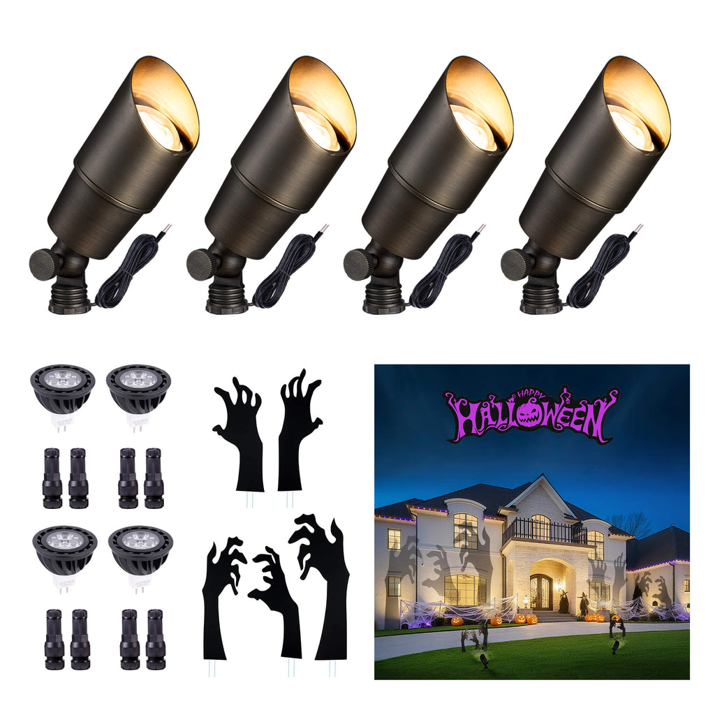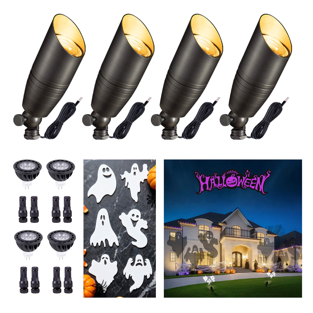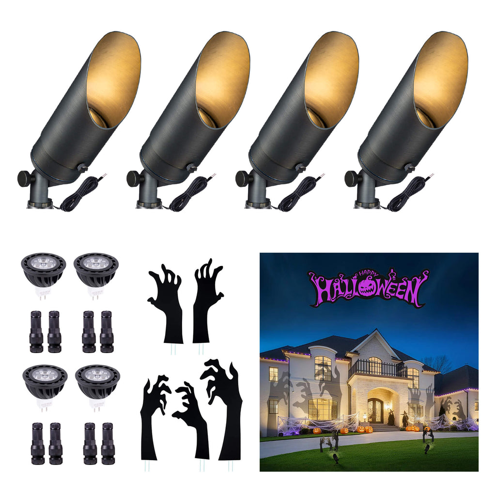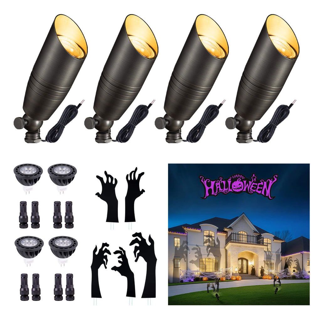 Gardenreet Brass Landscape Lighting Kit with Halloween Yard Signs for Outdoor House Garden Patio