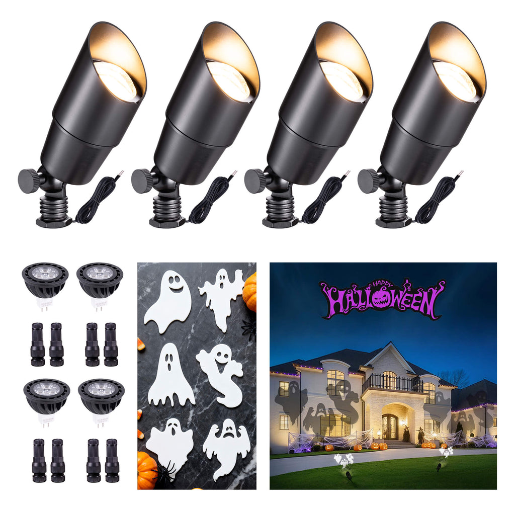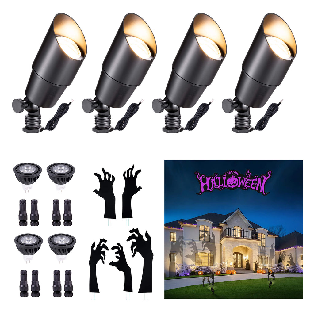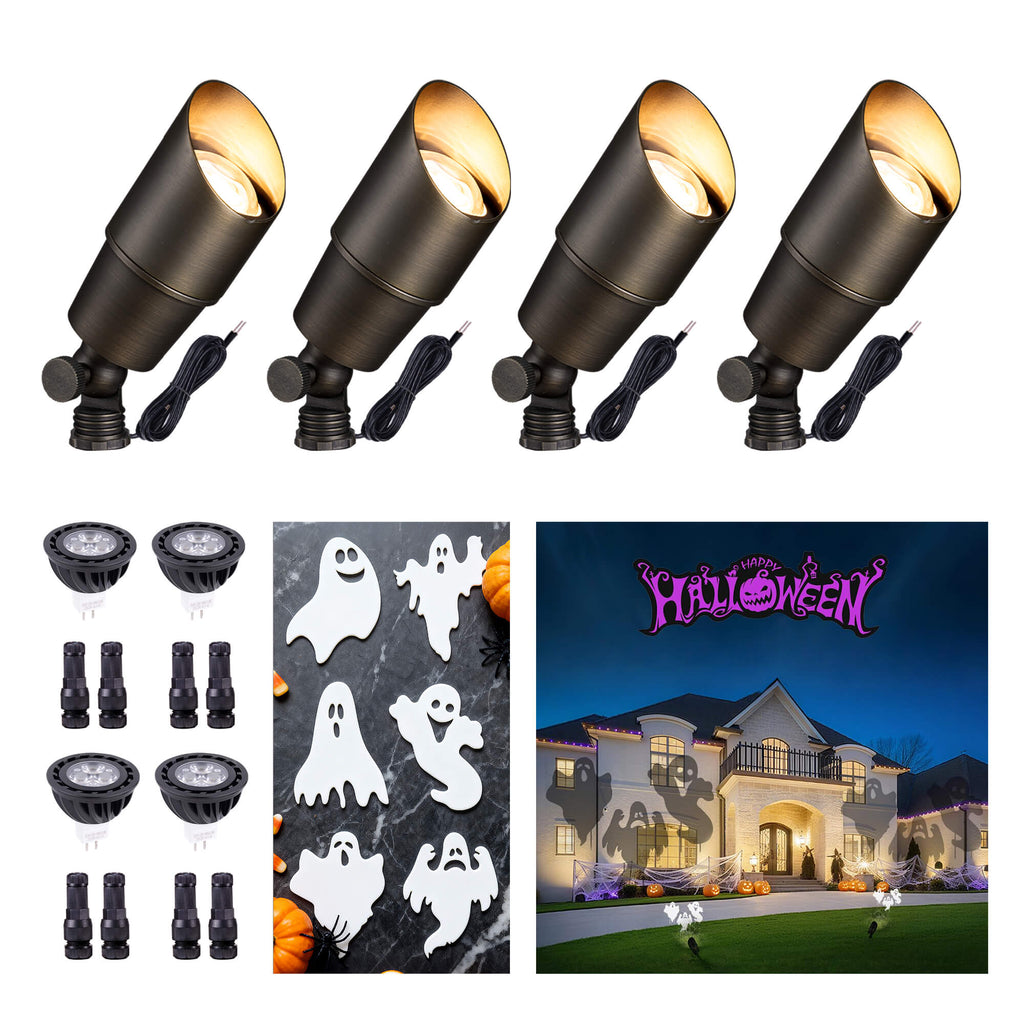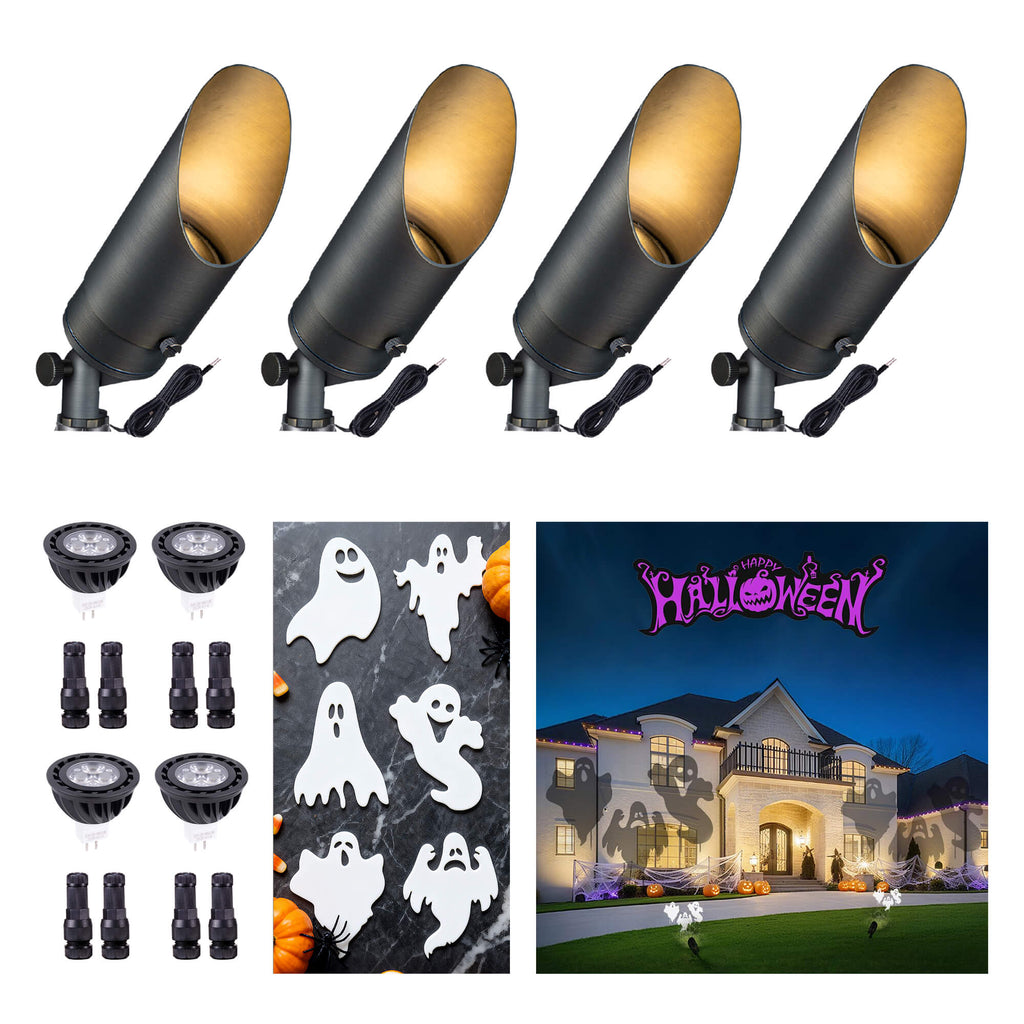 Gardenreet Brass Landscape Lighting Kit with Halloween Yard Signs for Outdoor House Garden Patio