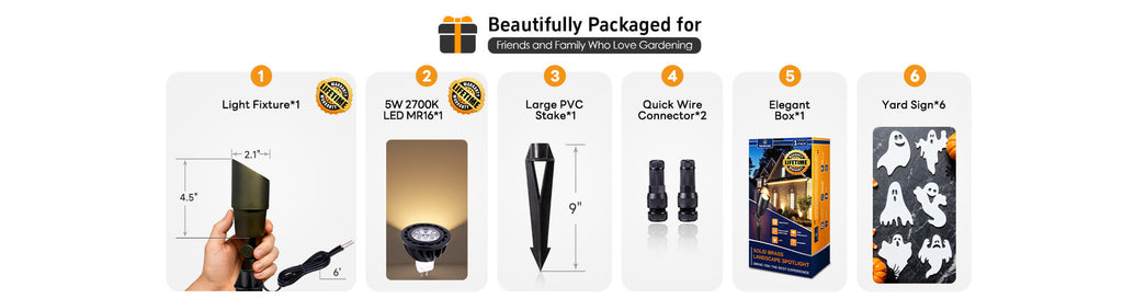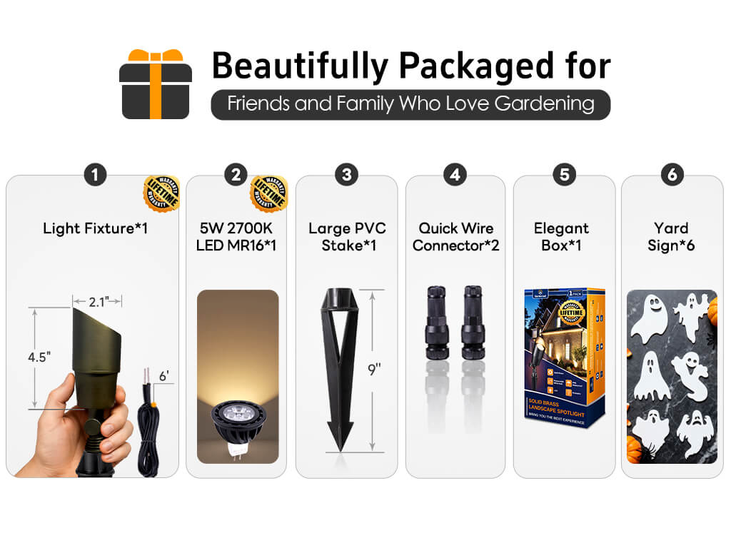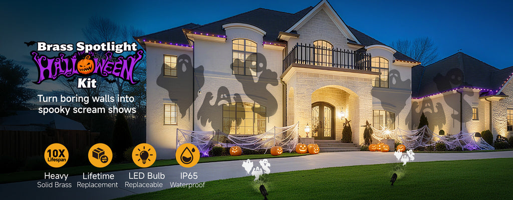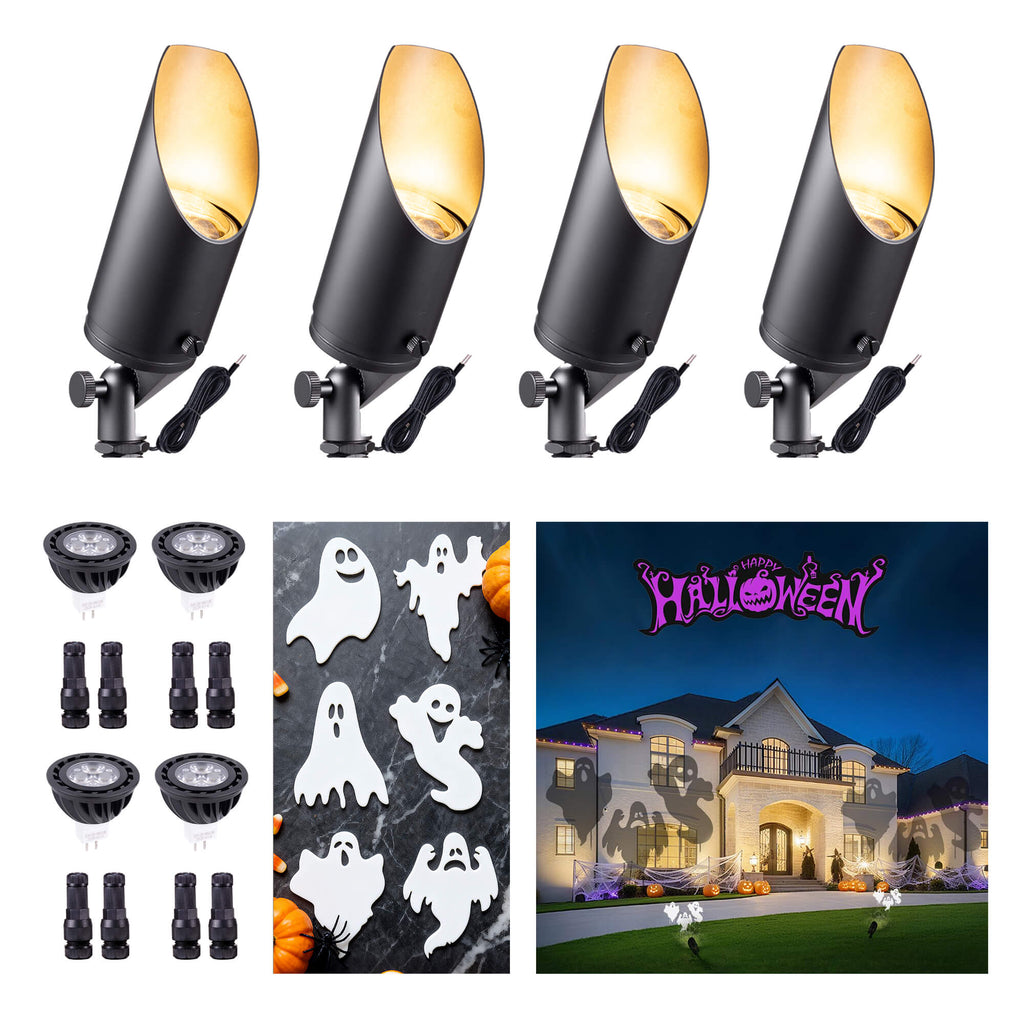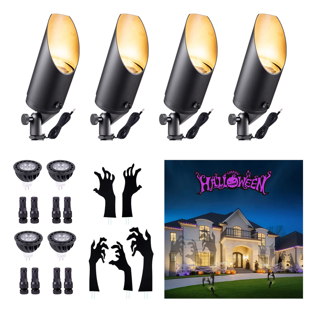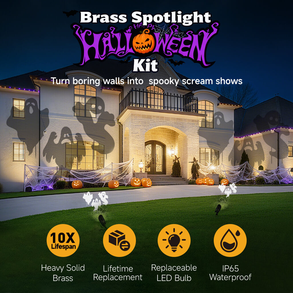 Gardenreet Brass Landscape Lighting Kit with Halloween Yard Signs for Outdoor House Garden Patio