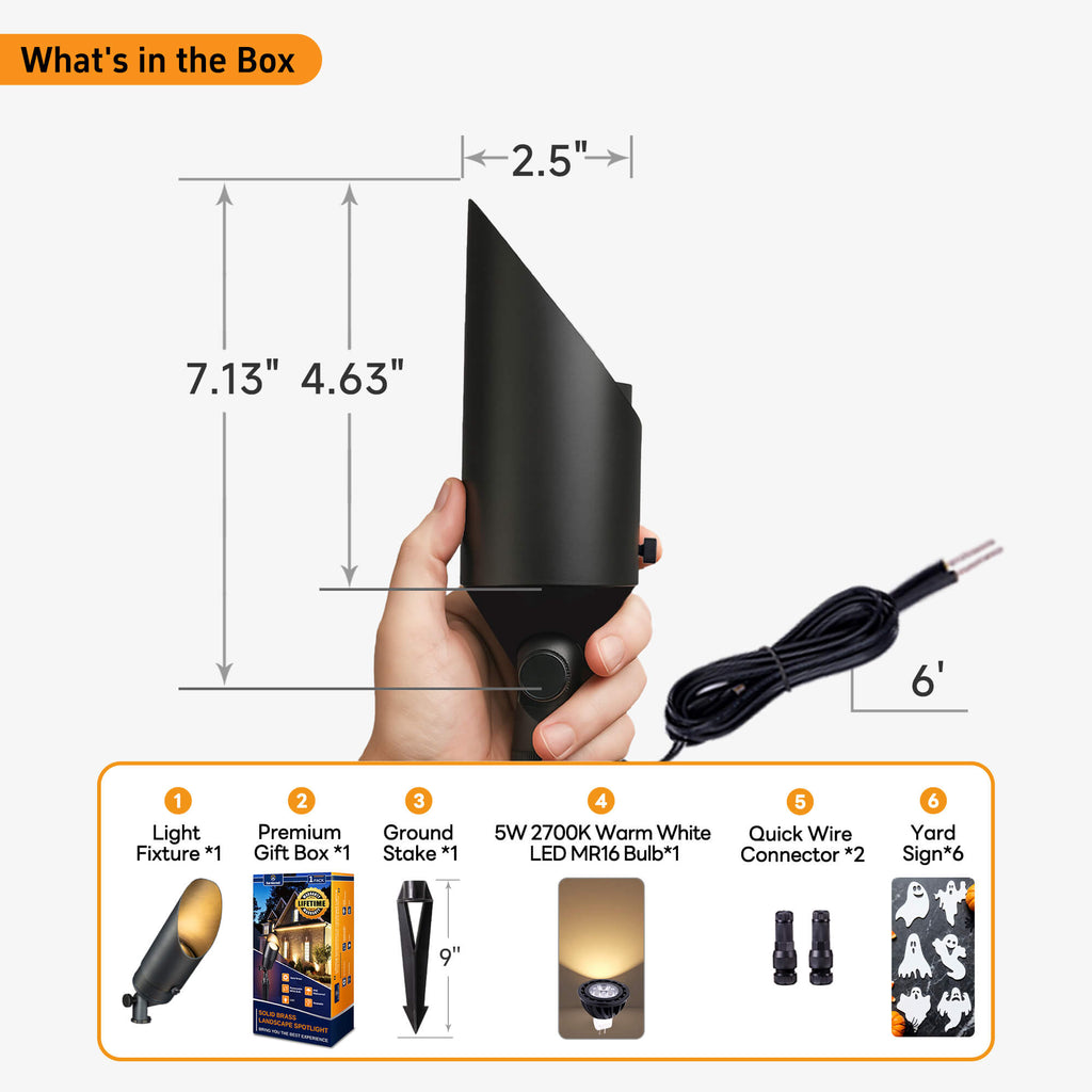 These low voltage landscape lighting spotlights come with a lifetime warranty. We provide free replacements for any fixture malfunctions.