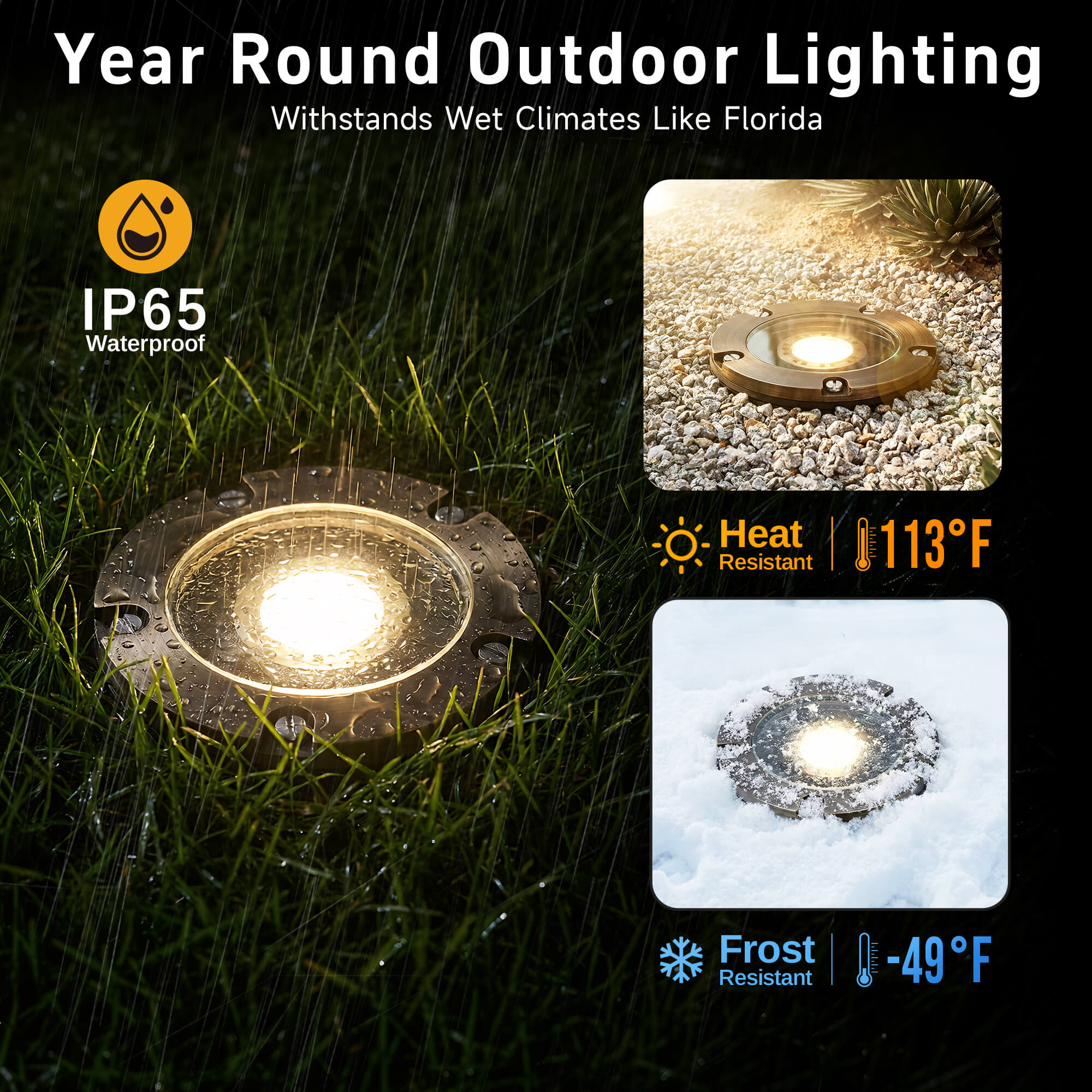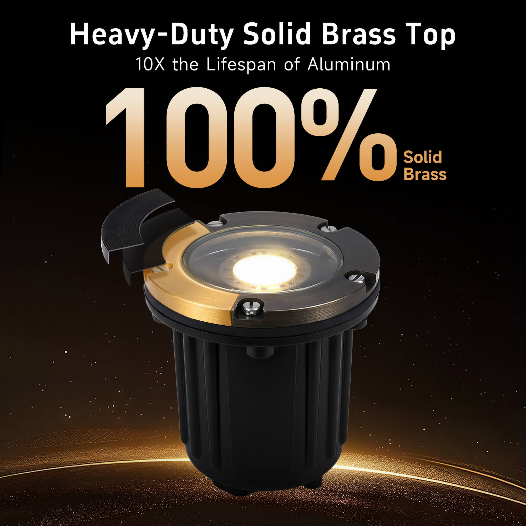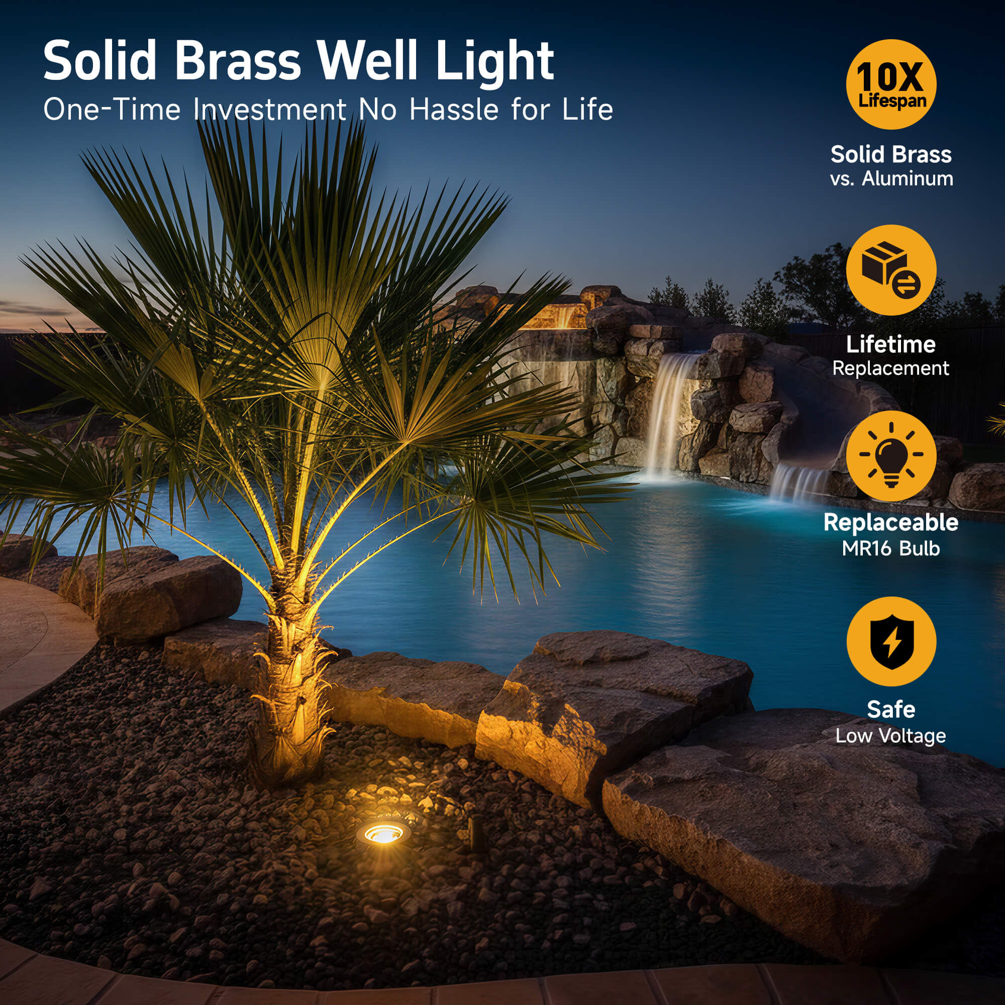 Gardenreet Brass In-ground Well Lights, Low Voltage IP65 Waterproof 12V LED Outdoor Landscape Lighting(Open Top 2202A)