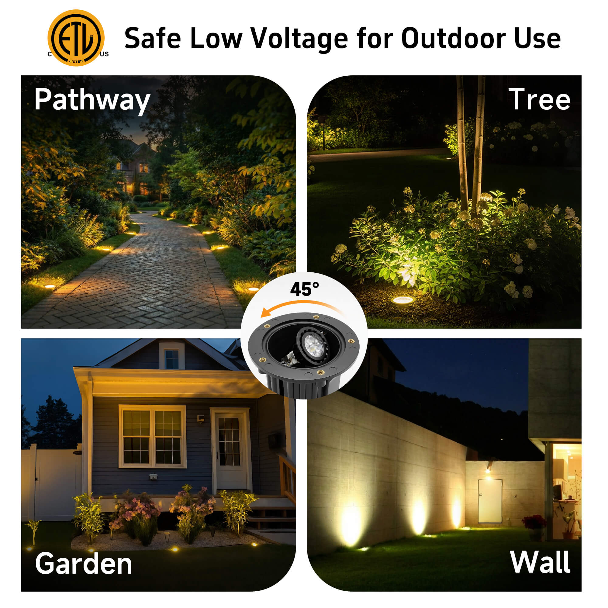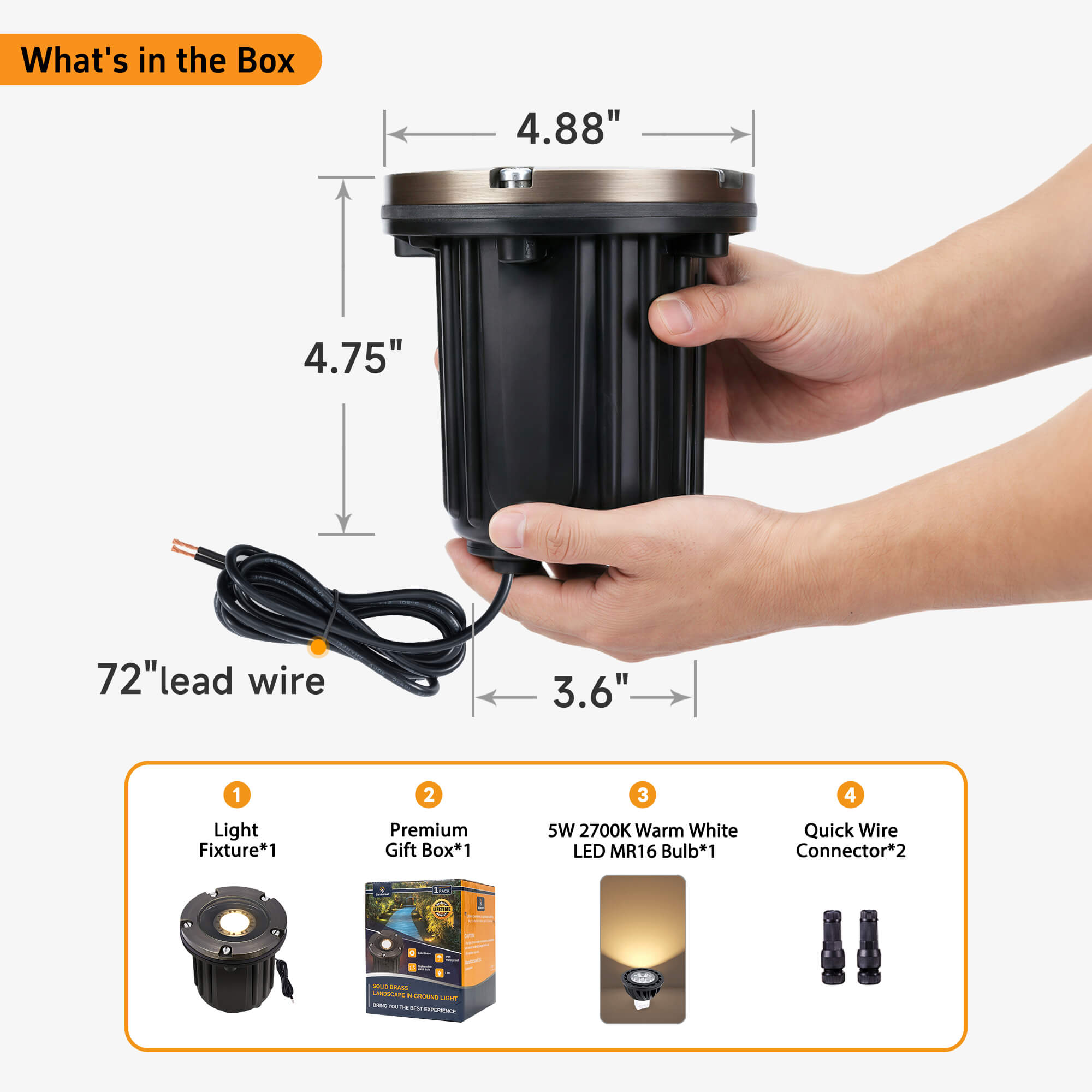 Our low voltage landscape in-ground lights accept LED and halogen MR16 bulbs with a GU5.3 scoket, up to 50w