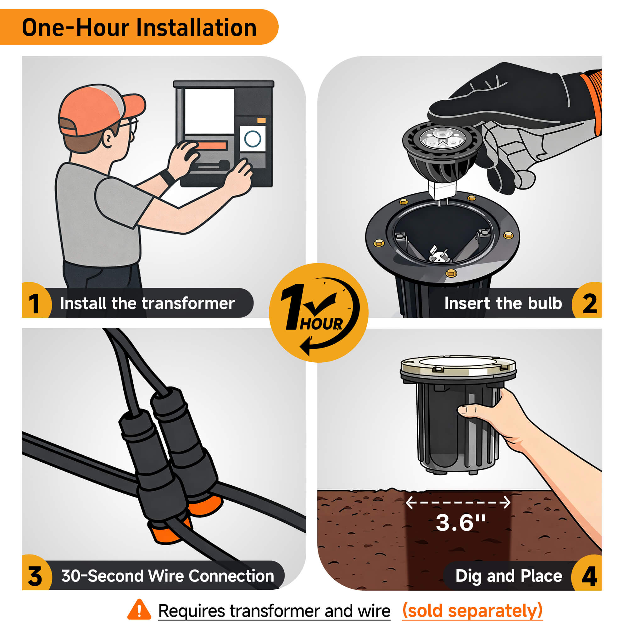 These underwater lights need wiring to a low voltage transformer(sold separately), and are not plug-and-play. Compatible with most transformers.