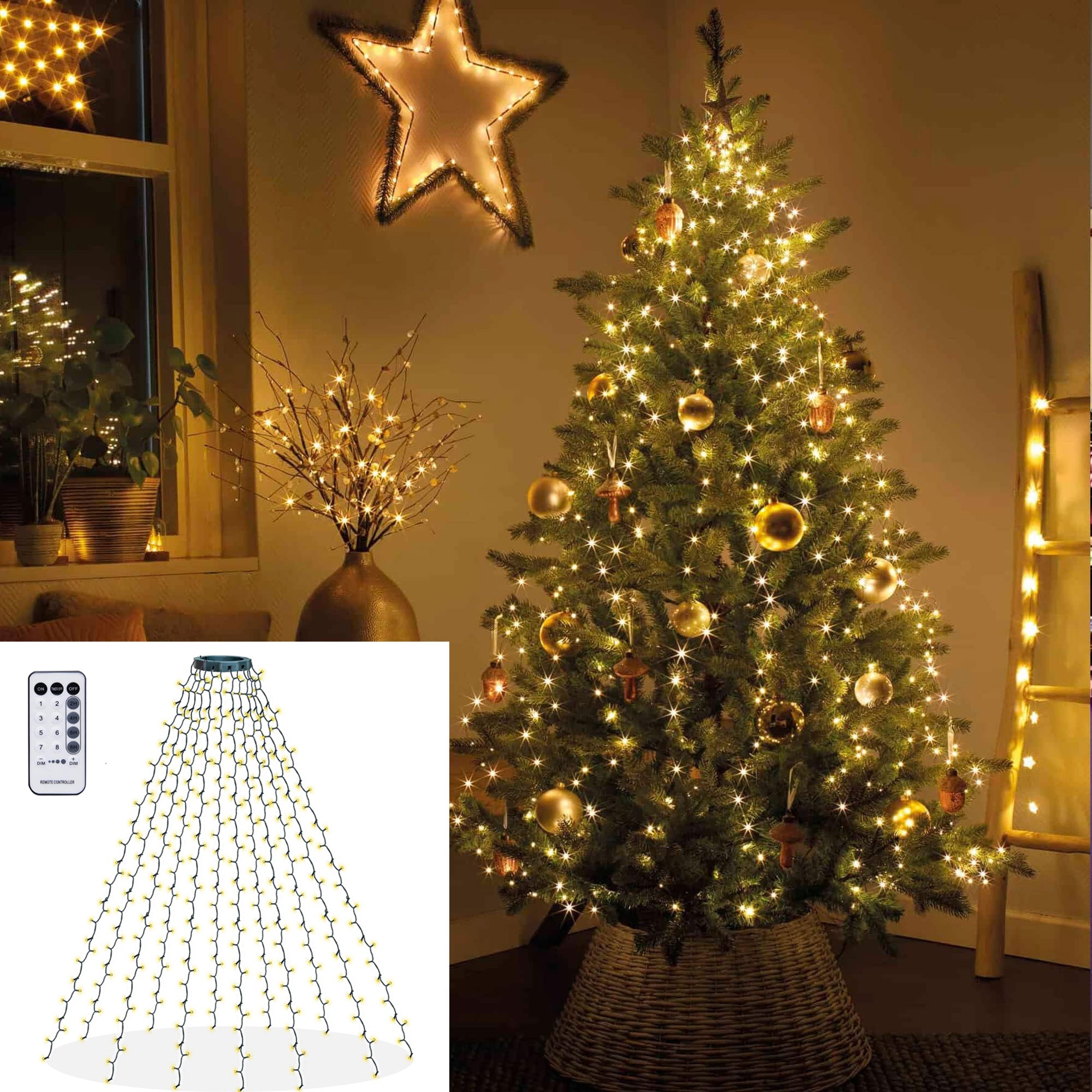 Christmas Tree Lights, 448 LED Waterfall Tree Topper Lights with Remote & 8 Lighting Modes, 8.2FT X 16 Lines Christmas Light for Indoor Outdoor Yard Party Xmas Decoration (Warm White) 1 Pack