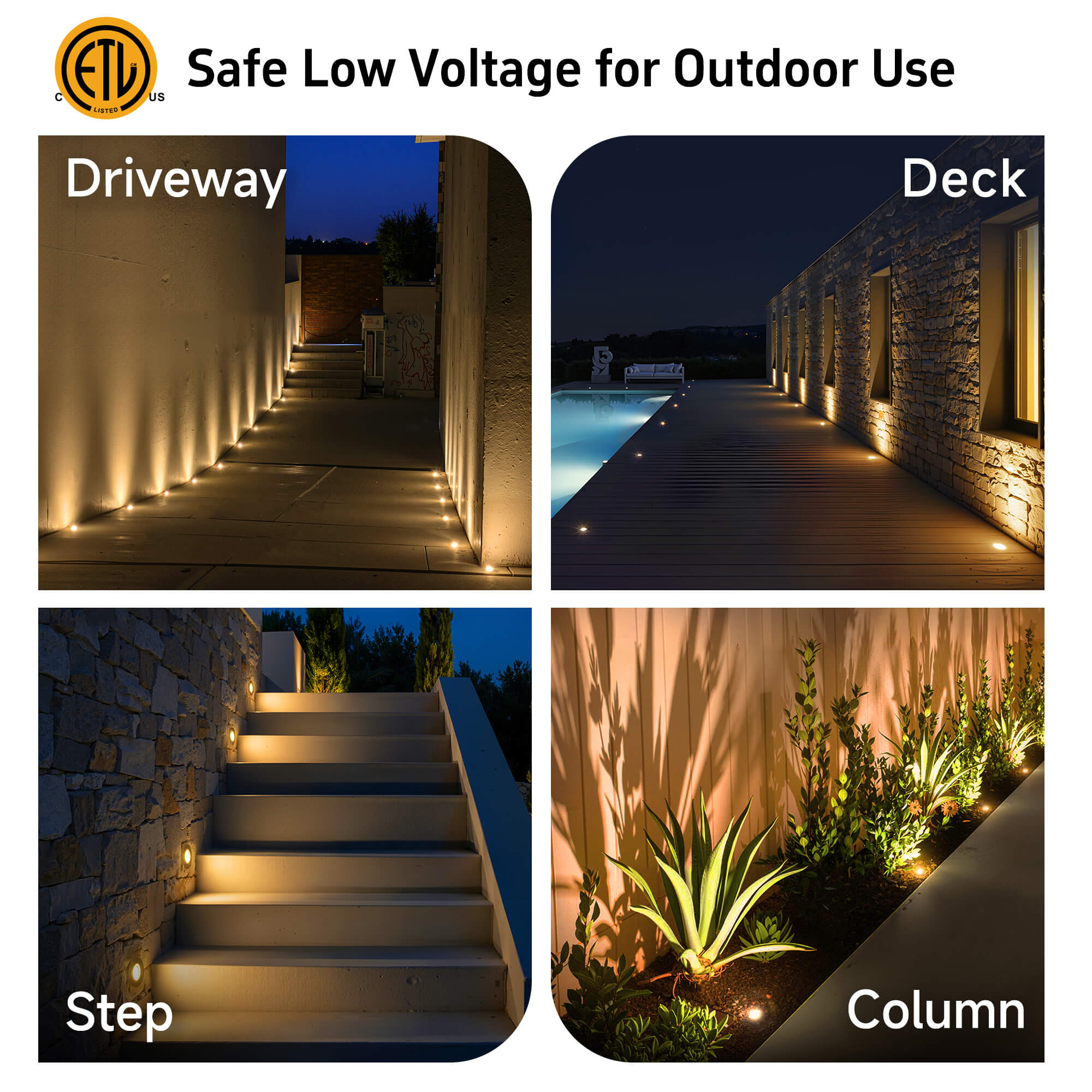 - 𝐒𝐚𝐟𝐞 & 𝐄𝐟𝐟𝐢𝐜𝐢𝐞𝐧𝐭: Ensure total peace of mind with our ETL Listed 12V system, the definitive safe choice for yards with children and pets. These LED landscape lights also save you money on energy bills, all while casting a beautiful 2700K warm white glow (225 Lm) using just 2.5W