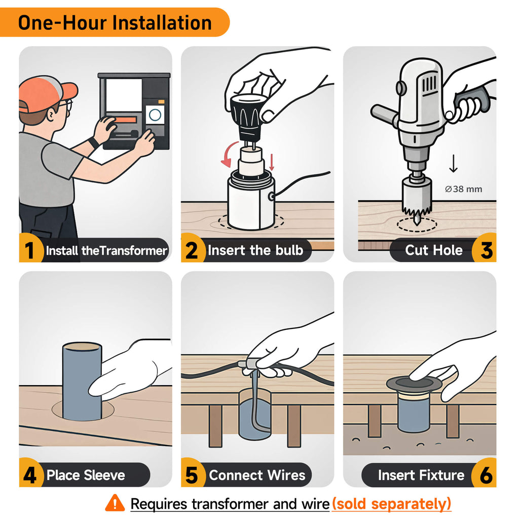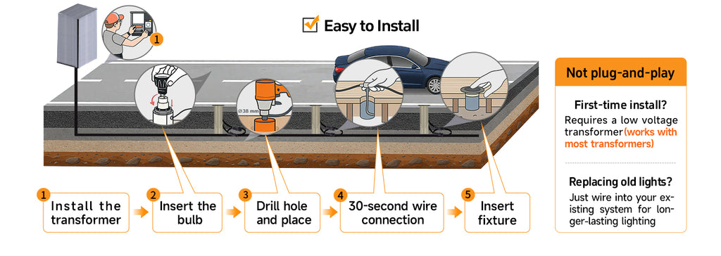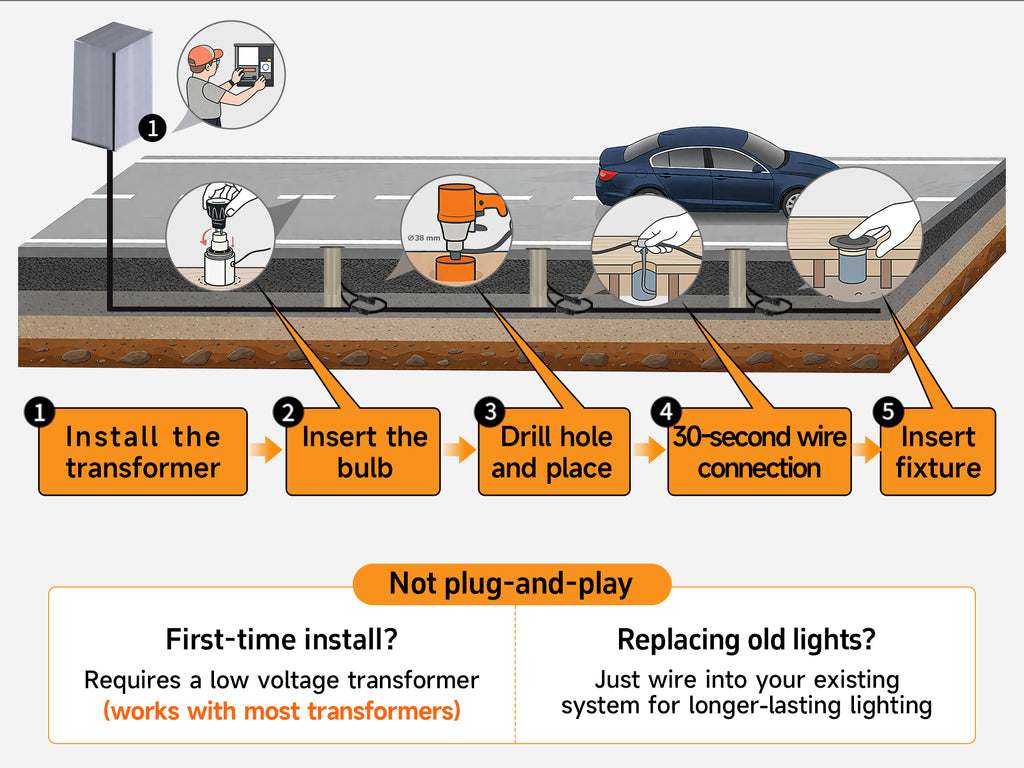 These in ground low voltage landscape lights need wiring to a low voltage transformer, sold separately, and are not plug-and-play. Compatible with most transformers.