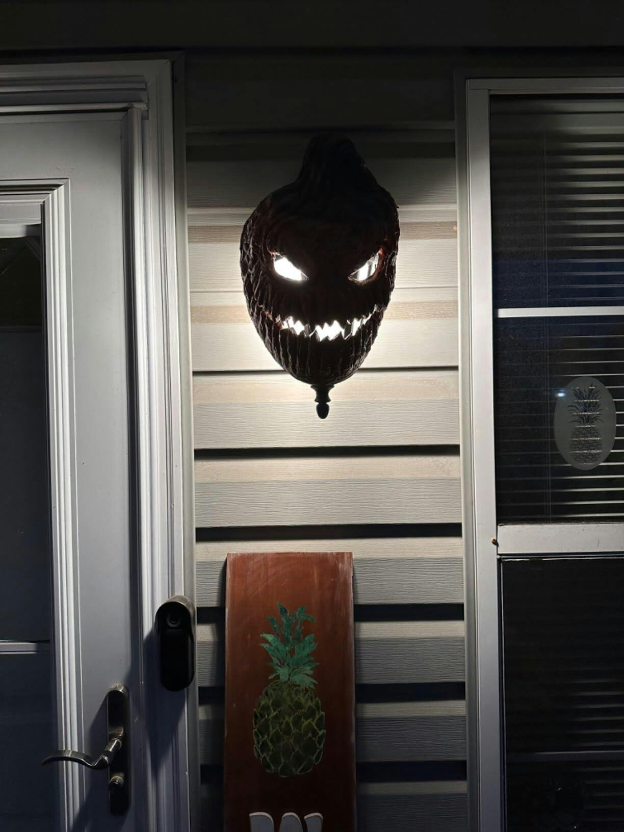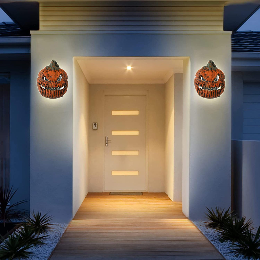 - 🎃【Halloween Decorations Outdoor】PISKEKAT Light cover has good light transmission, and will not accumulate heat to damage your porch light. At night, the light will light up the horrible eyes and mouth of the light covers. Day time, the orange evil pumpkin also adds a horrible atmosphere to the festival.It is a safety and wonderful Halloween decoration to decor your home
