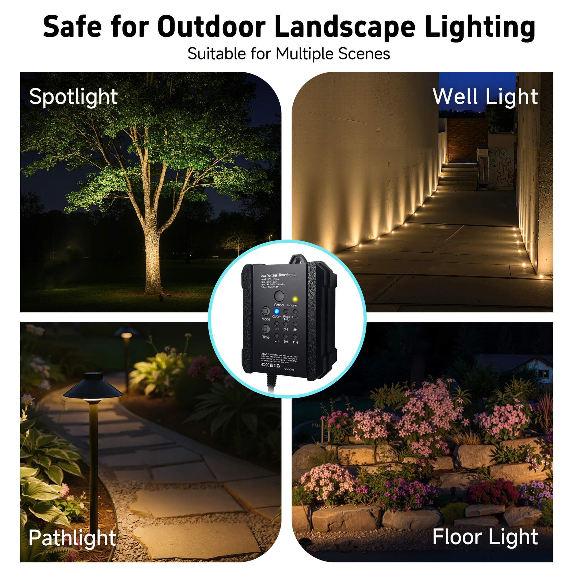 Absolutely. The transformer converts high-voltage power tolow voltage (12V DC), which is safe to touch and commonly used in residential landscape lighting.